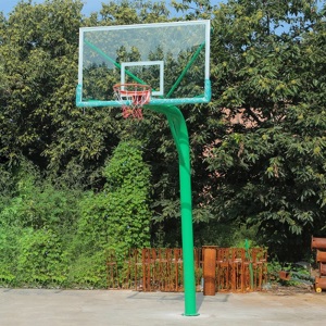固定式单臂圆管篮球架地埋式伸臂1800模压篮板实心篮圈可定制 绿色