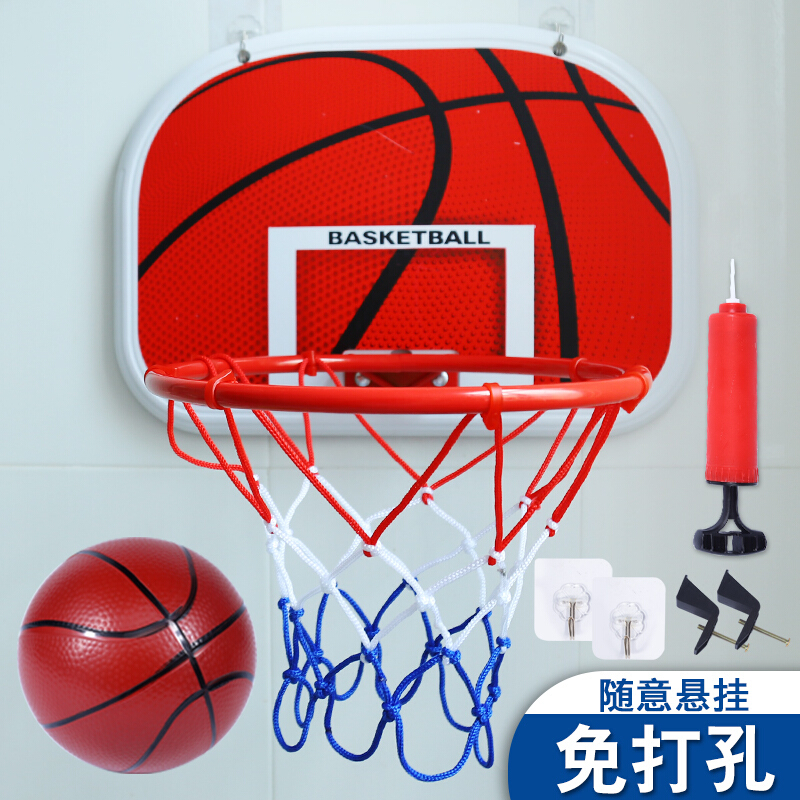 蓝球架室内蓝球架篮球框宝宝免打孔悬挂式篮球架篮筐儿童篮球框宝宝投篮玩具宿舍室内家用 小号篮板+1球+4无痕+2直角