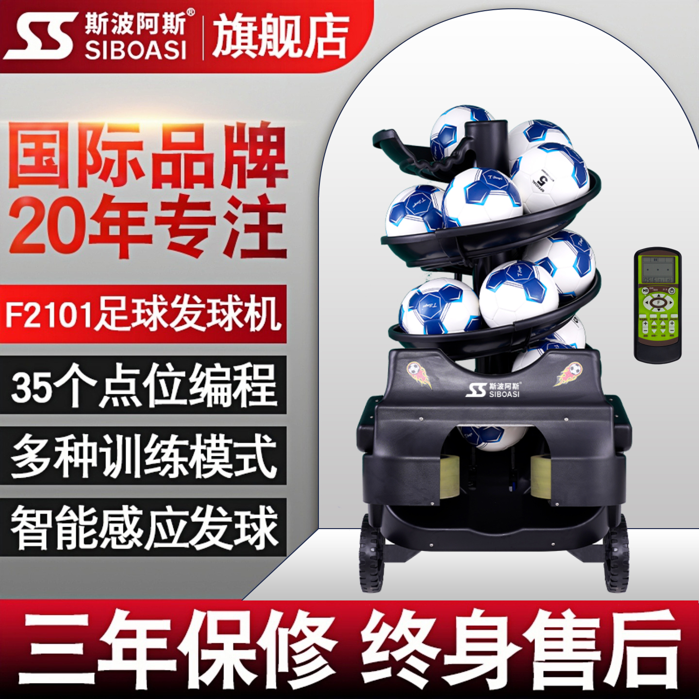 足球自动发球机训练器材专业教练发射门传球守传球斯波阿斯F2101A