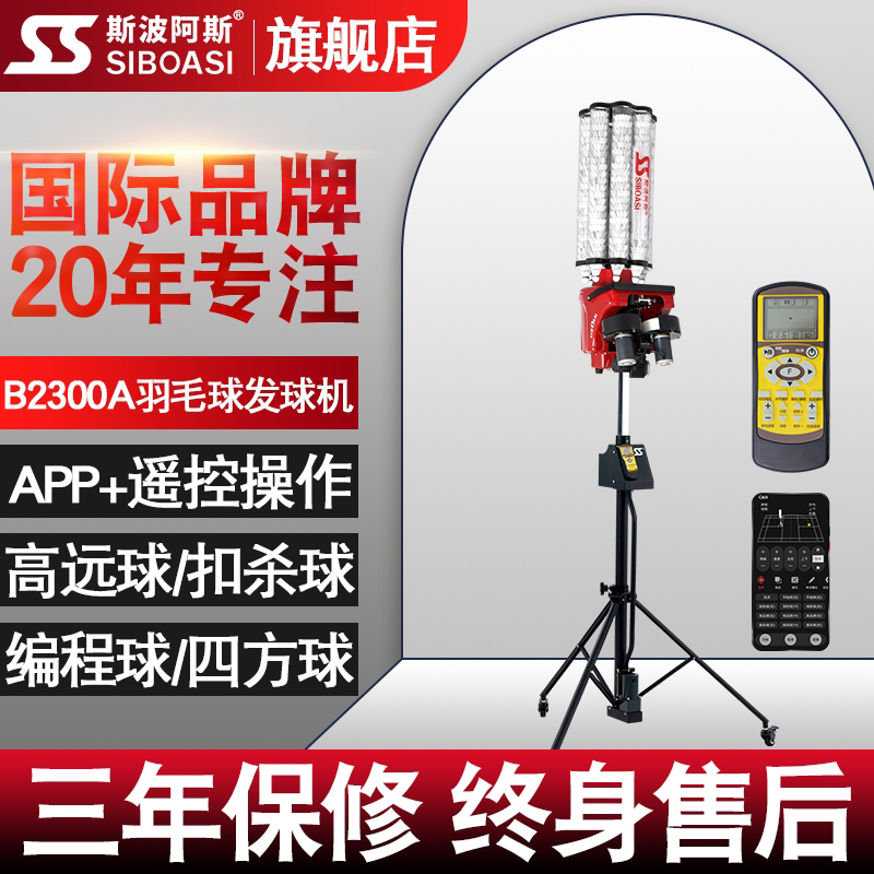 斯波阿斯B2202A羽毛球自动发球机训练器专业陪练神器发射喂球器材