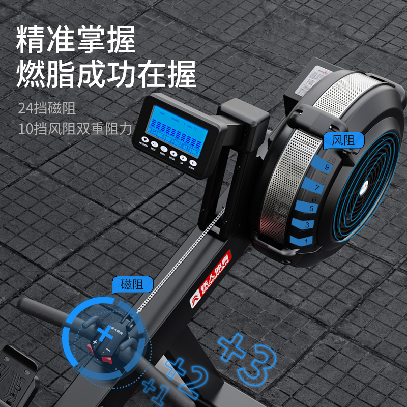 铁人体育专业商用级静音智能风磁阻可折叠风阻划船器机家用健身房