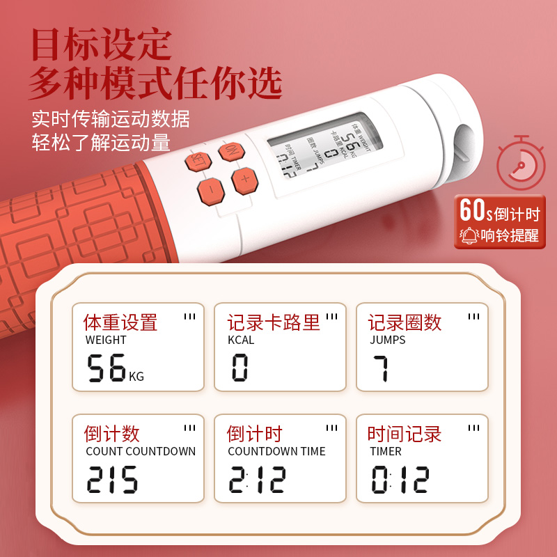 铁人体育跳绳健身减肥运动大人成人钢丝电子计数专业绳中国红礼品