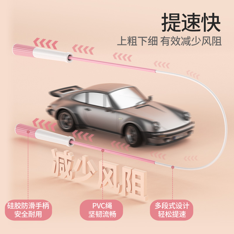 儿童跳绳粉色硅胶把(三段式) 送收纳袋/可DIY贴纸(贴纸自备)