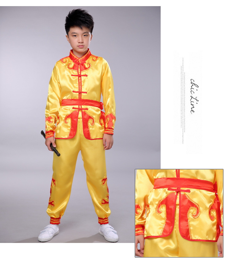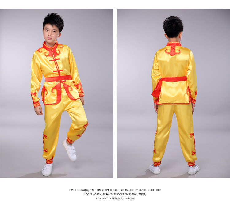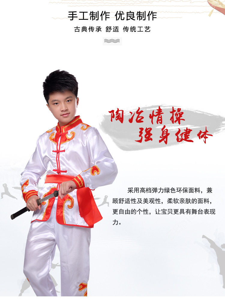 商品名称:打鼓服练功服腰鼓舞龙舞狮服装男女生儿童成人武术演出服表演服装