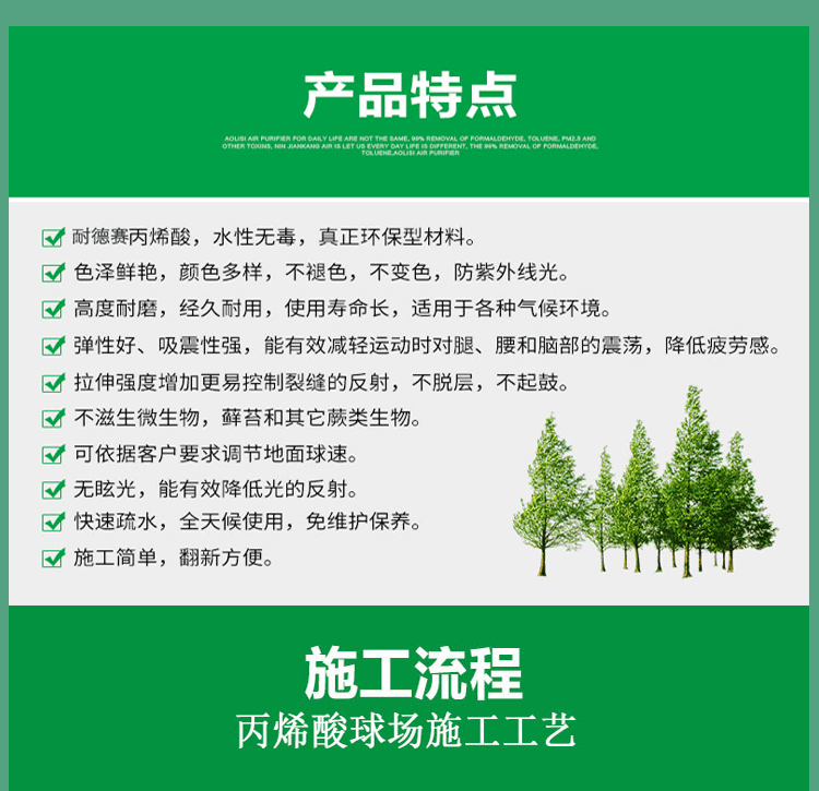 商品名称:丙烯酸球场材料地坪漆塑胶硅PU篮球场运动地胶地面防滑网球场地坪