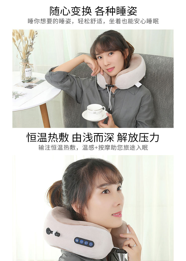 多功能U型按摩枕震动按摩枕颈椎按摩仪颈部按摩器电动护颈仪