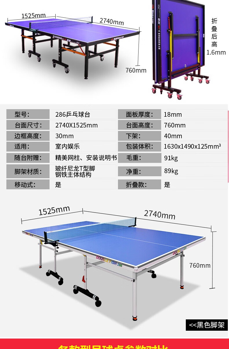 商品名称:双鱼(DOUBLE FISH)标准室内乒乓球桌 折叠训练比赛乒乓球台