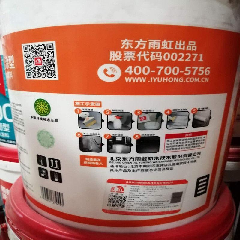 东方雨虹防水100S易涂200柔韧300超柔400彩色高弹防水涂料 厨房卫生间防水材料防水胶